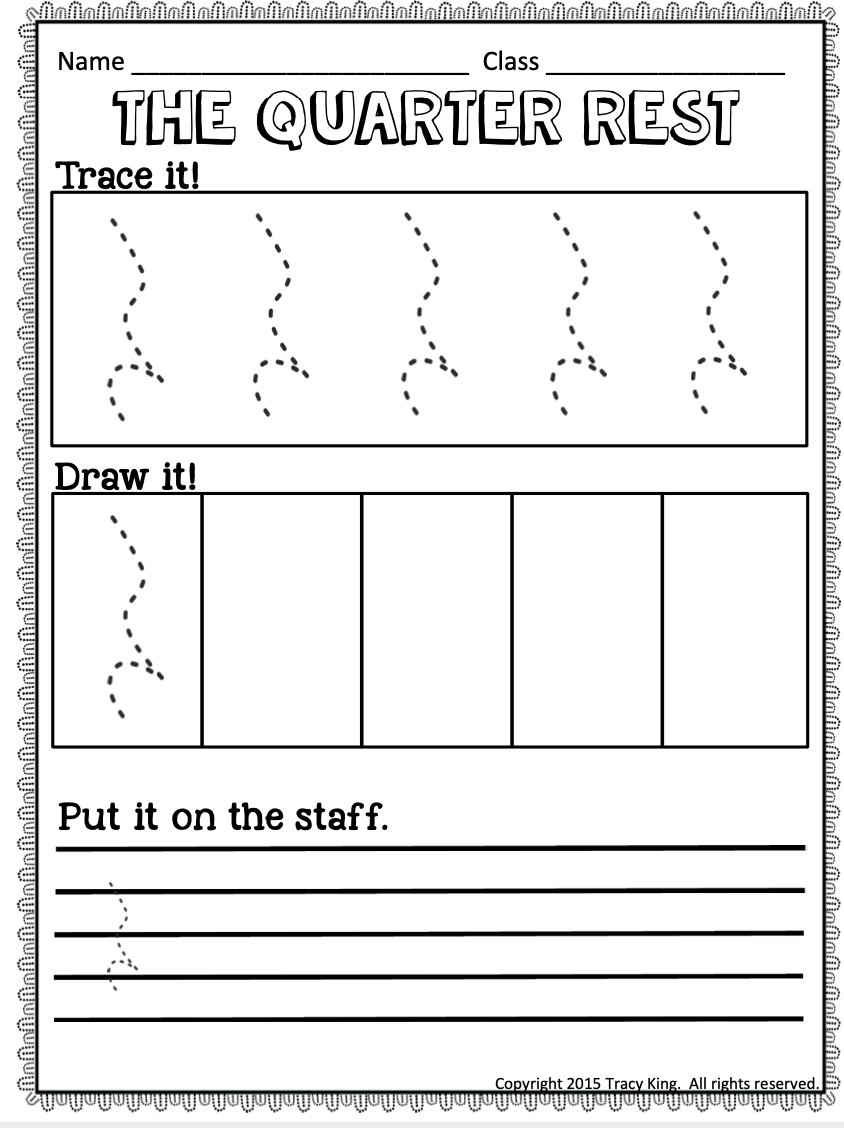 Stop in the middle of the next space. How to draw a quarter rest Next, draw a line slanting down from right to left. Half rests are on the third line, and quarter rests are. I had a little nut tree. To draw the quarter rest, draw the right side of a letter r, omitting the vertical, or start with a number 2, but pull the horizontal line down on the right. In the staff, you can write a whole rest as follows: To find a quarter of this square we will divide it into four equally sized parts. The symbol for a quarter rest is black vertical mark as shown below: The rests you choose need to make it obvious to the eye where the beats of the bar fall. The whole note is hung just below a line and the half rest is written on a line. They are both represented by a small black rectangle. It includes an all about worksheet that allows students to practice drawing, a composition worksheet, a listening activity, and a color by note worksheet.